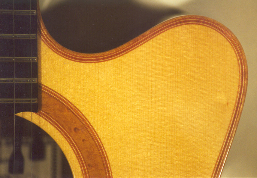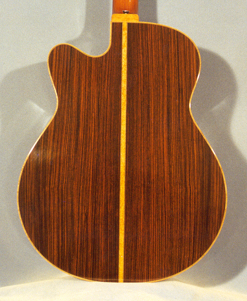 Description: My own guitar: Schwartz Custom w cutaway. M-grade Engelmann Spruce, M-grade E. Indian Rosewood & Birdseye Maple trim & Maple Leaf inlay. Not for sale.